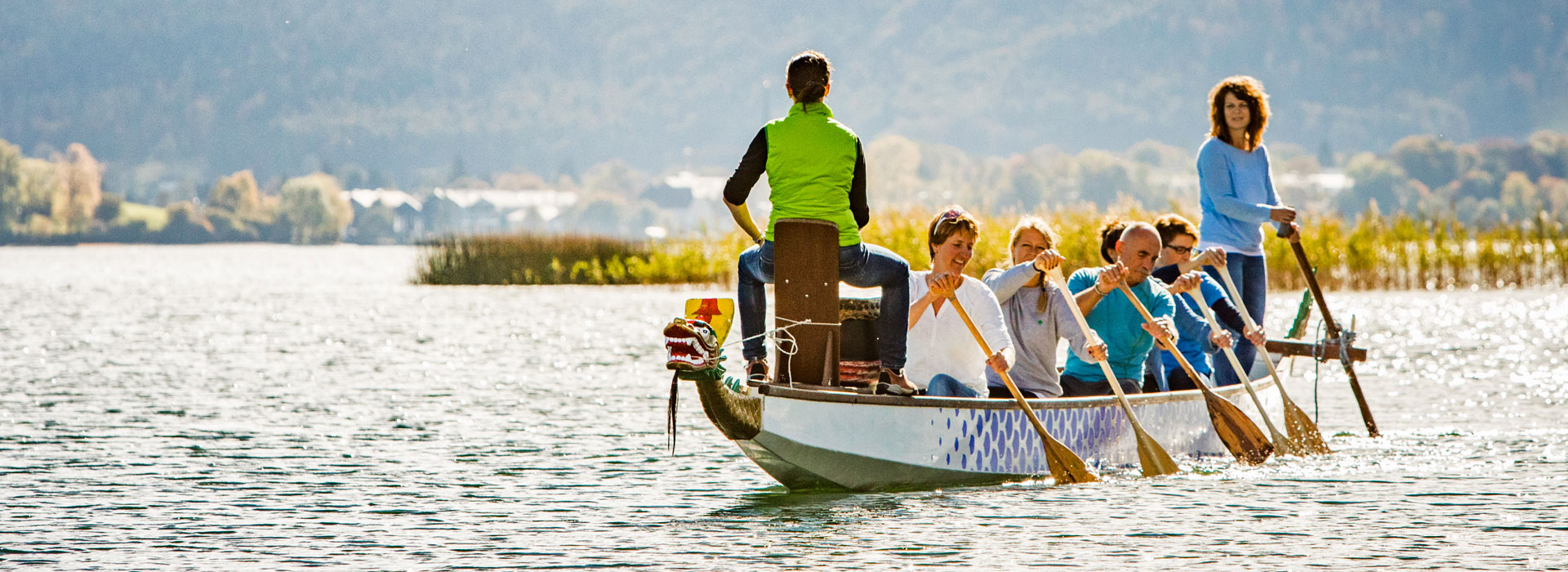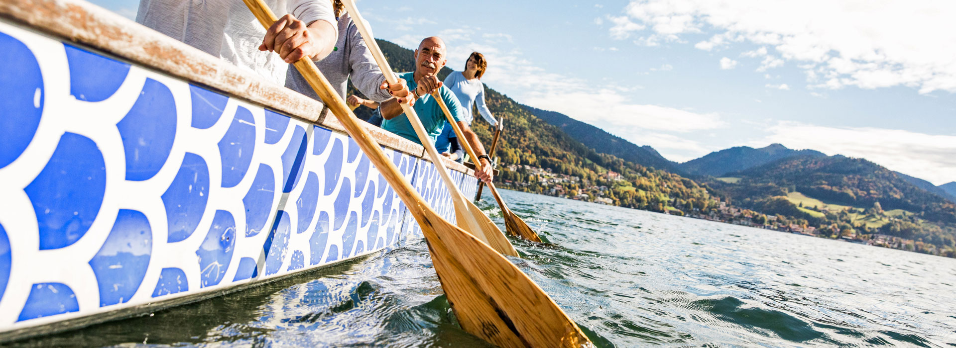 Gaudi auf dem TegernseeEin Drachenboot ist ein Boot wie ein Drache. Es will gebändigt werden! Eine einfache Sache wird es nicht, dieses Gefährt als erste Gruppe ins Ziel zu bringen. Unser Teamevent zum Paddeln und Spaßhaben auf dem Tegernsee. Die kleinen Boote sind bis 10 Personen ausgelegt, die großen Boote bis maximal 18 Personen.