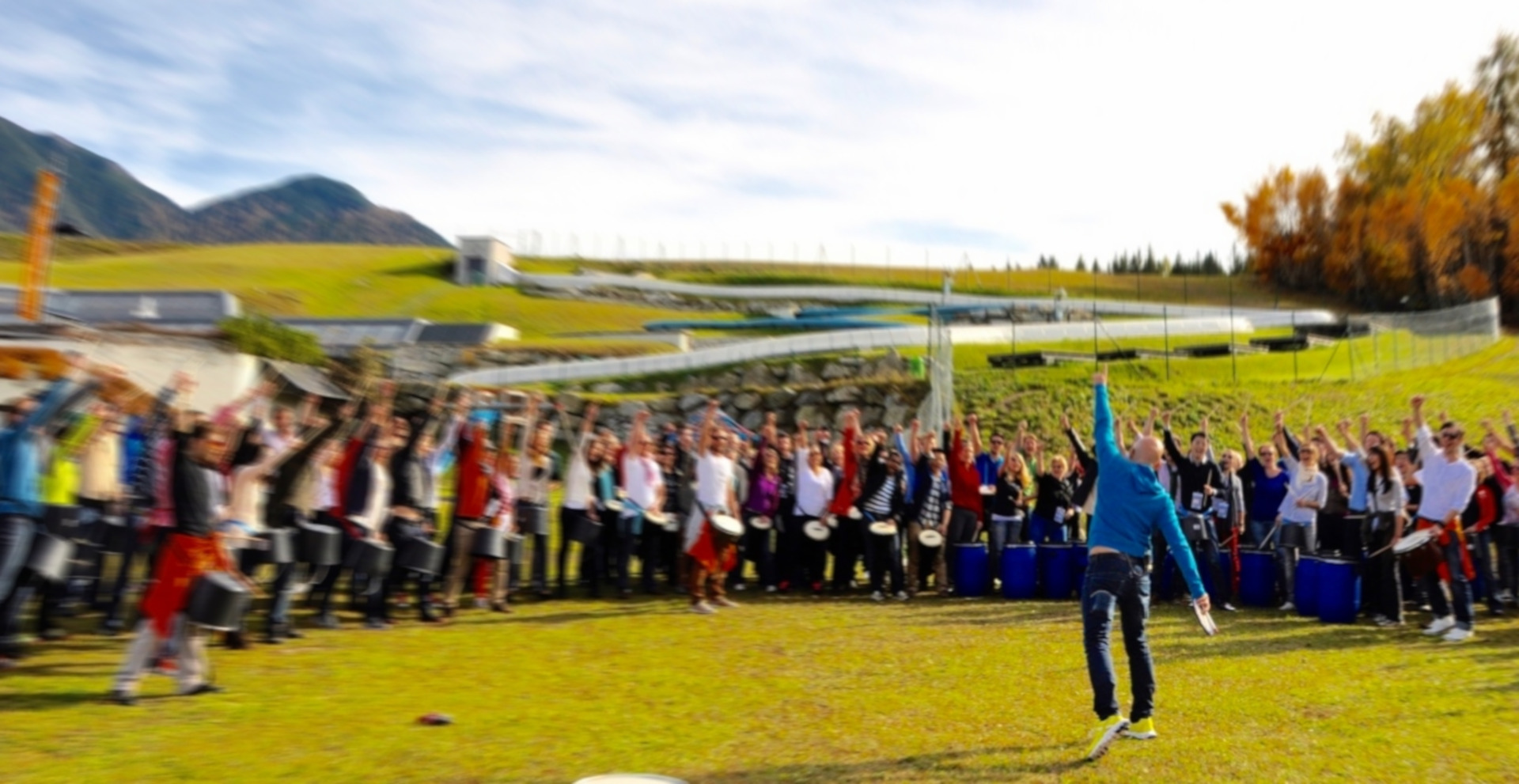 Trommelevent mit Rhythmus, Action und SpaßBei Drum Together steht der Spaß im Vordergrund. Durch die Aktivität jedes Einzelnen entsteht beim Trommeln eine gewaltige Energie, die ansteckt und mitreißt. Es gibt für das Trommelevent keinerlei Voraussetzungen. Ob Vorstand oder Auszubildender, ob man sich kennt oder nicht - vor der Trommel sind alle gleich. Jeder Teilnehmer wird mit einem Instrument ausgestattet und trägt so aktiv zum Geschehen bei. Bereits in den ersten Minuten spüren die Akteure die Energie, die sie gemeinsam beim Trommeln erzeugen können - ideal für Teambuilding Events! Ziel ist die Aufführung des „Power-Grooves“ am Ende des Trommelevents. Nach und nach wird dieser aus einzelnen Bausteinen zusammengesetzt und wächst allmählich zu einer beeindruckenden Performance.
